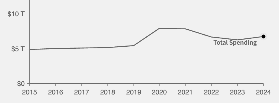 Have a look at the data on federal spending from the Treasury Department, noting that Trump was President in 2020 when it spiked during the pandemic. Try to make sense of Lawler’s statement as you look at this graph. You can’t.