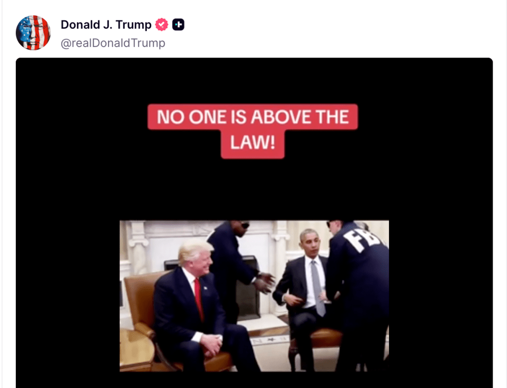 Honored to be recognized by a man who posted a fake video over the weekend showing Obama being tackled and arrested by the FBI in the Oval Office while Trump watches and smiles, with soundtrack of the Village People singing “YMCA.”
